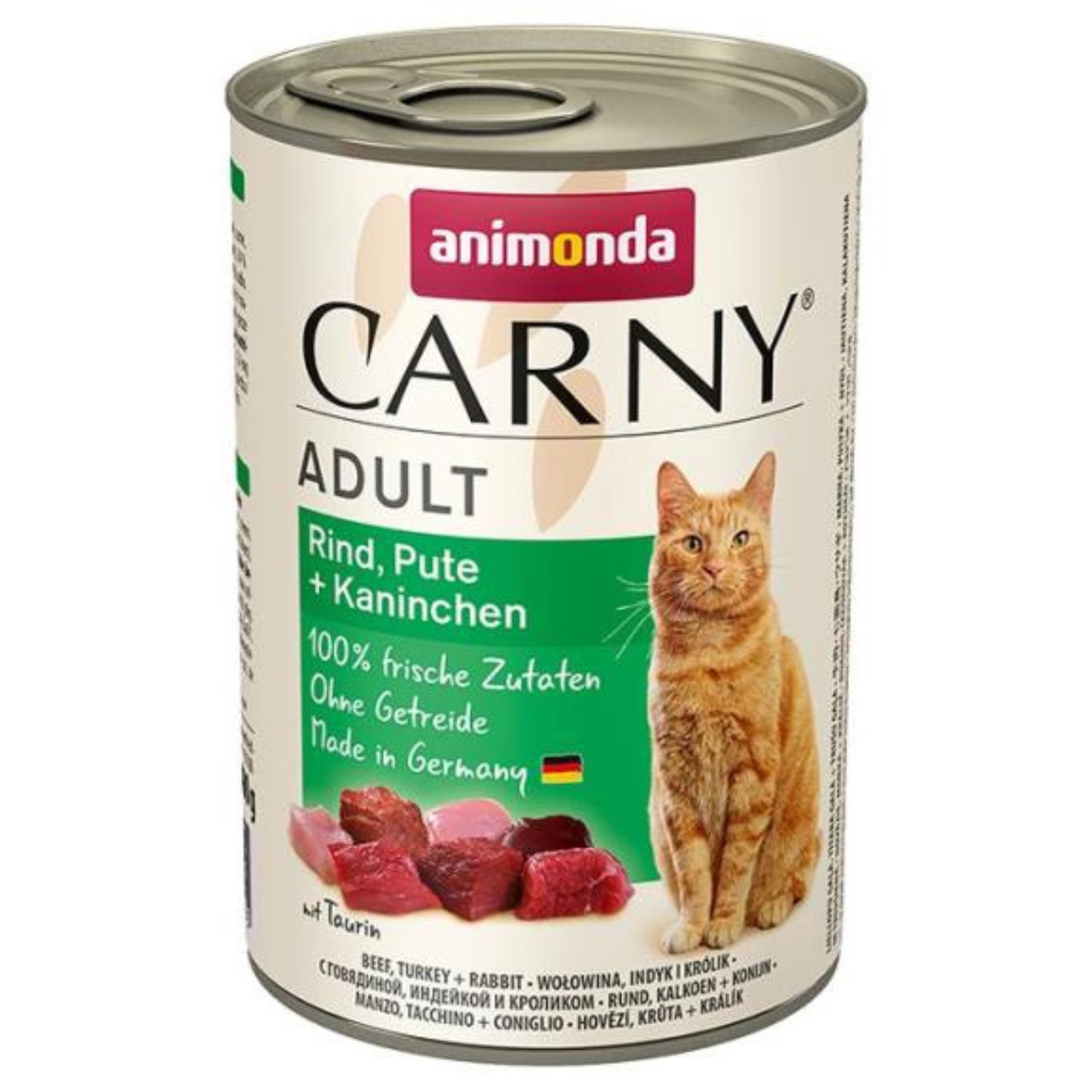 ANIMONDA Carny ADULT z wołowiną indykiem i królikiem to bezpieczny i wartościowy element diety dla każdego kota.
