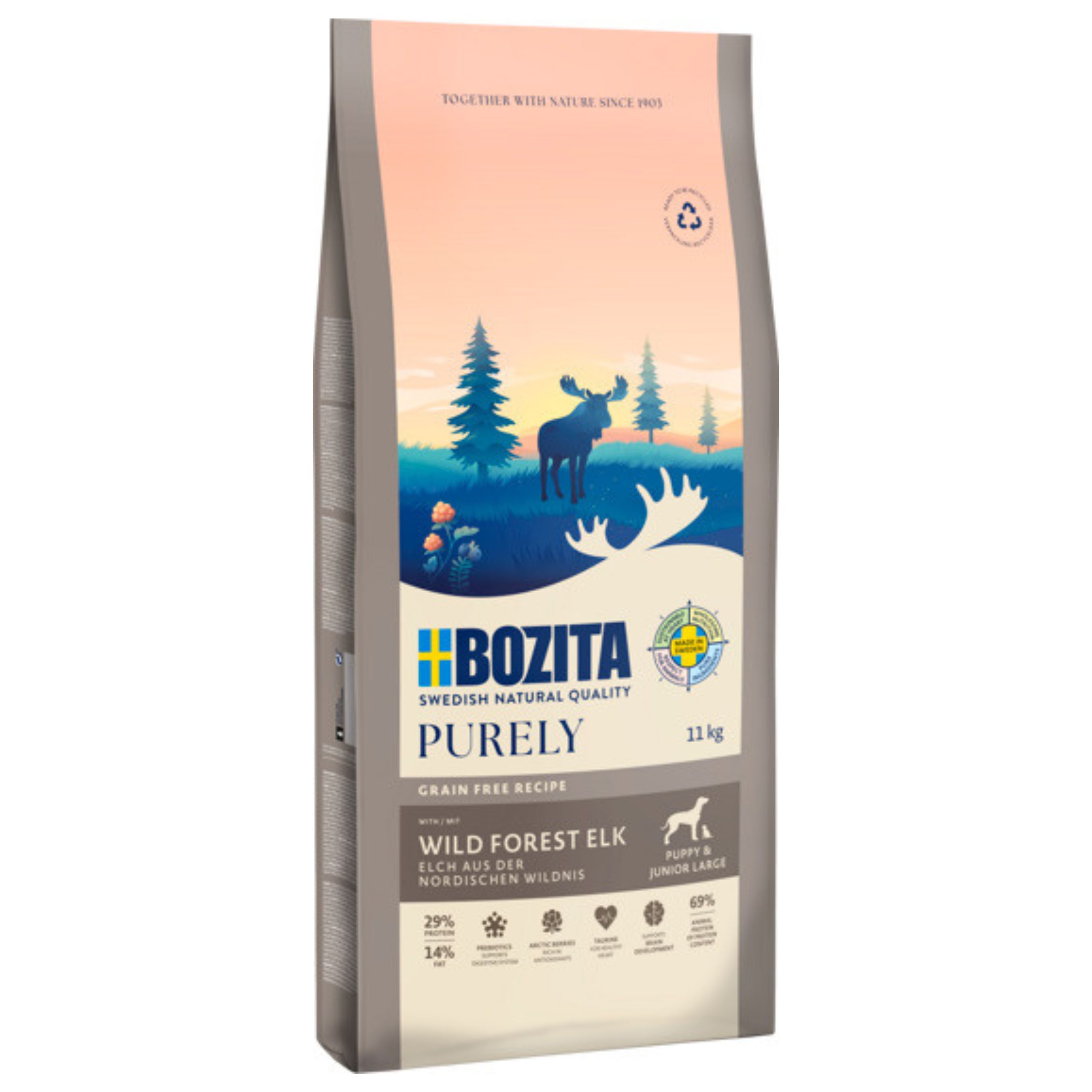 BOZITA Purely PUPPY&JUNIOR Large Łoś to naturalny fundament zdrowia, który pozwala Twojemu szczeniakowi czerpać radość z każdego dnia.
