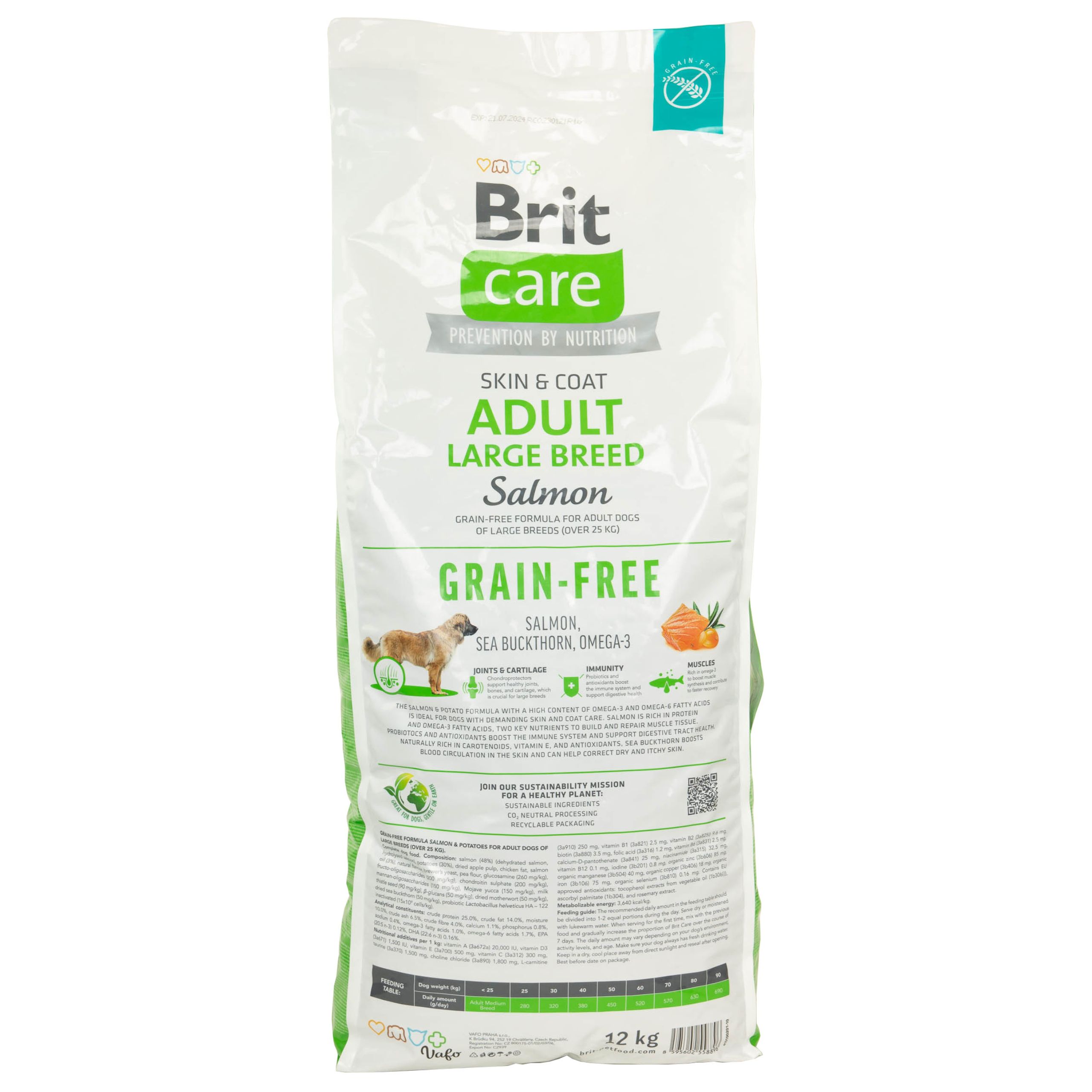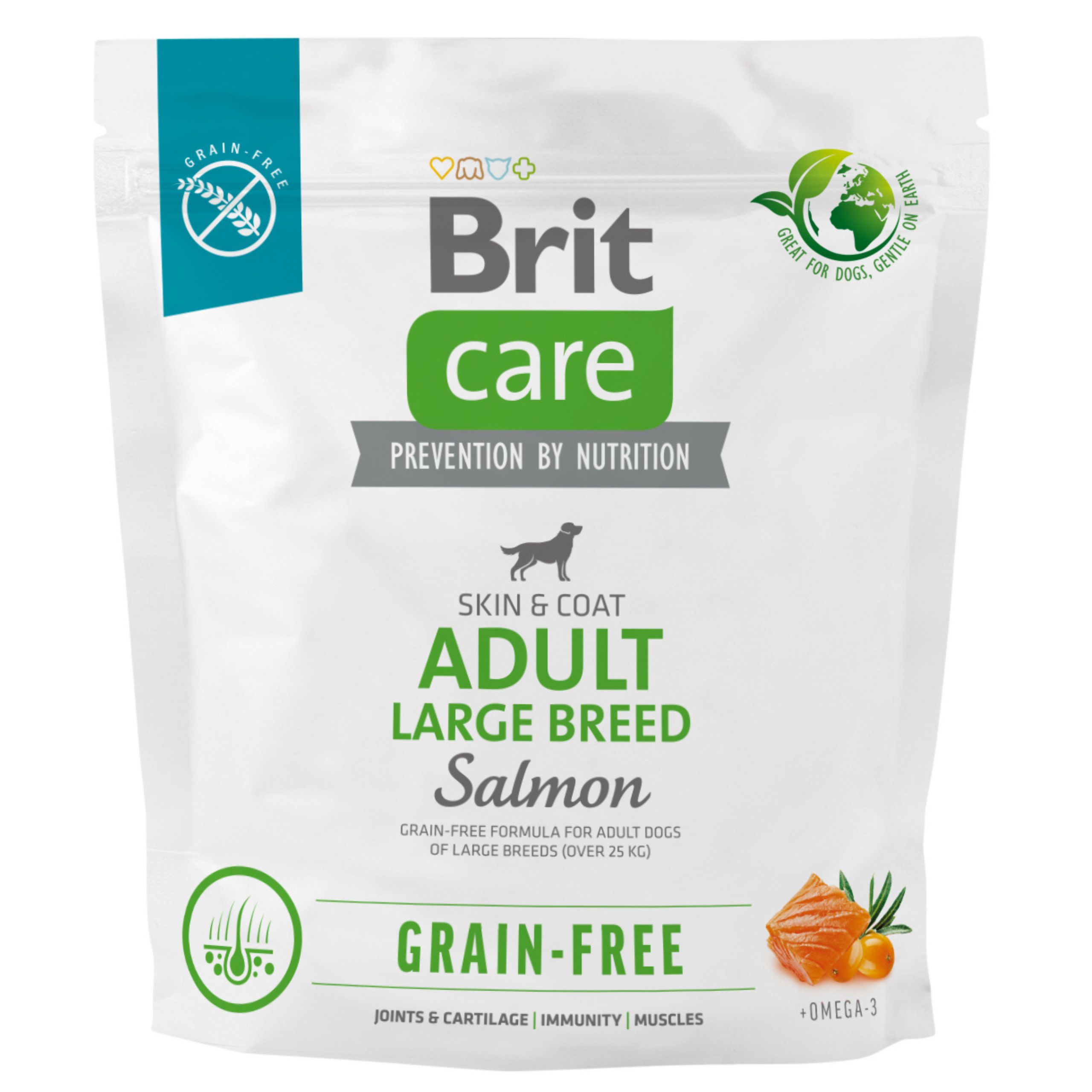BRIT CARE Grain-Free Adult Large Salmon to smakowita karma, która zadba o odporność Twojego pupila i pomoże utrzymać jego stawy oraz skórę w najlepszej kondycji.