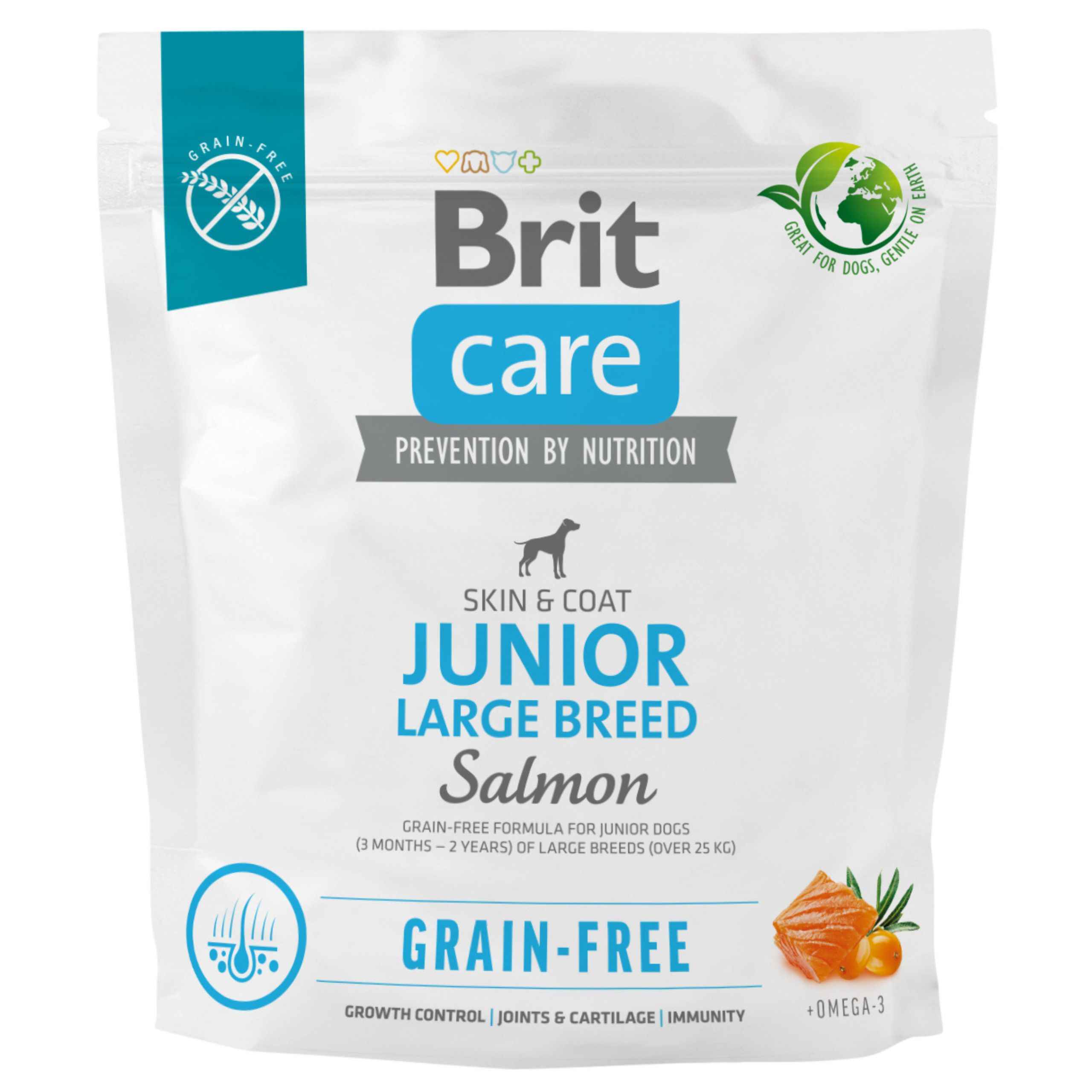 BRIT CARE Grain-Free Junior Large Salmon to naturalny posiłek, który nasyci Twojego pupila i dostarczy mu energii potrzebnej zabaw i wspólnych aktywności.
