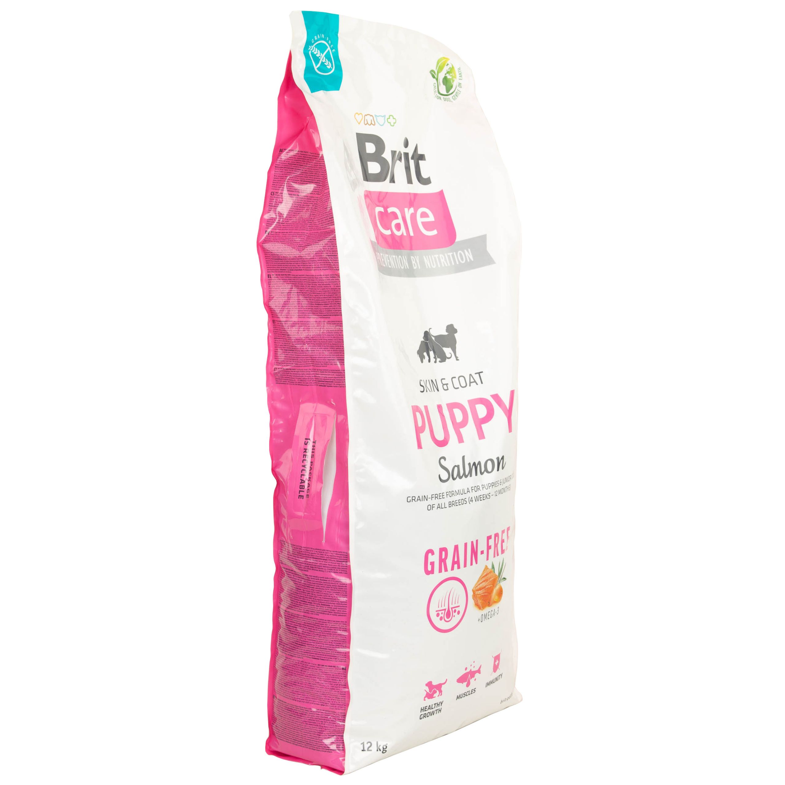 BRIT CARE Grain-Free Puppy Salmon idealnie sprawdzi się jako podstawa zbilansowanej diety Twojego psa i dostarczy mu wszystkich niezbędnych do wzrostu składników.