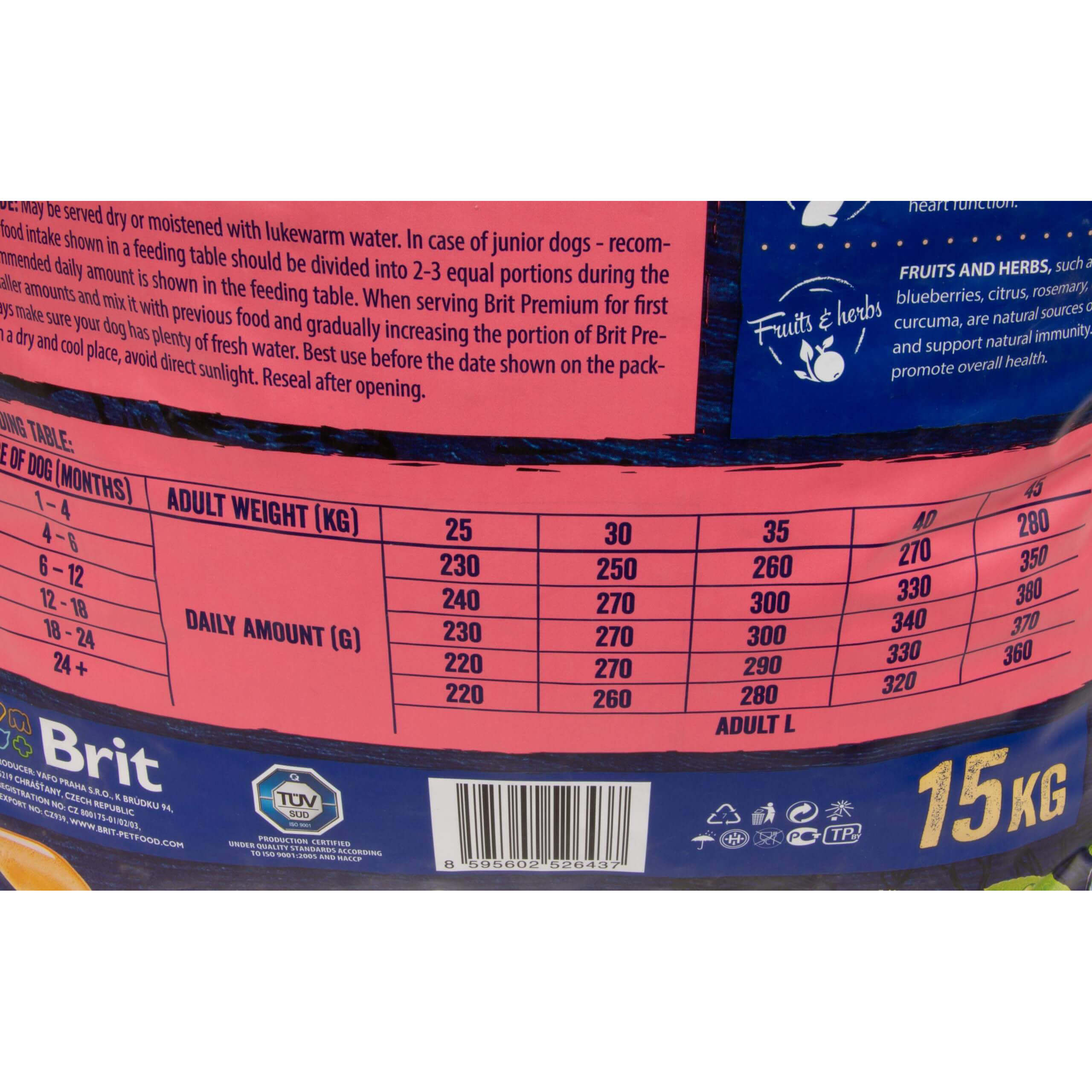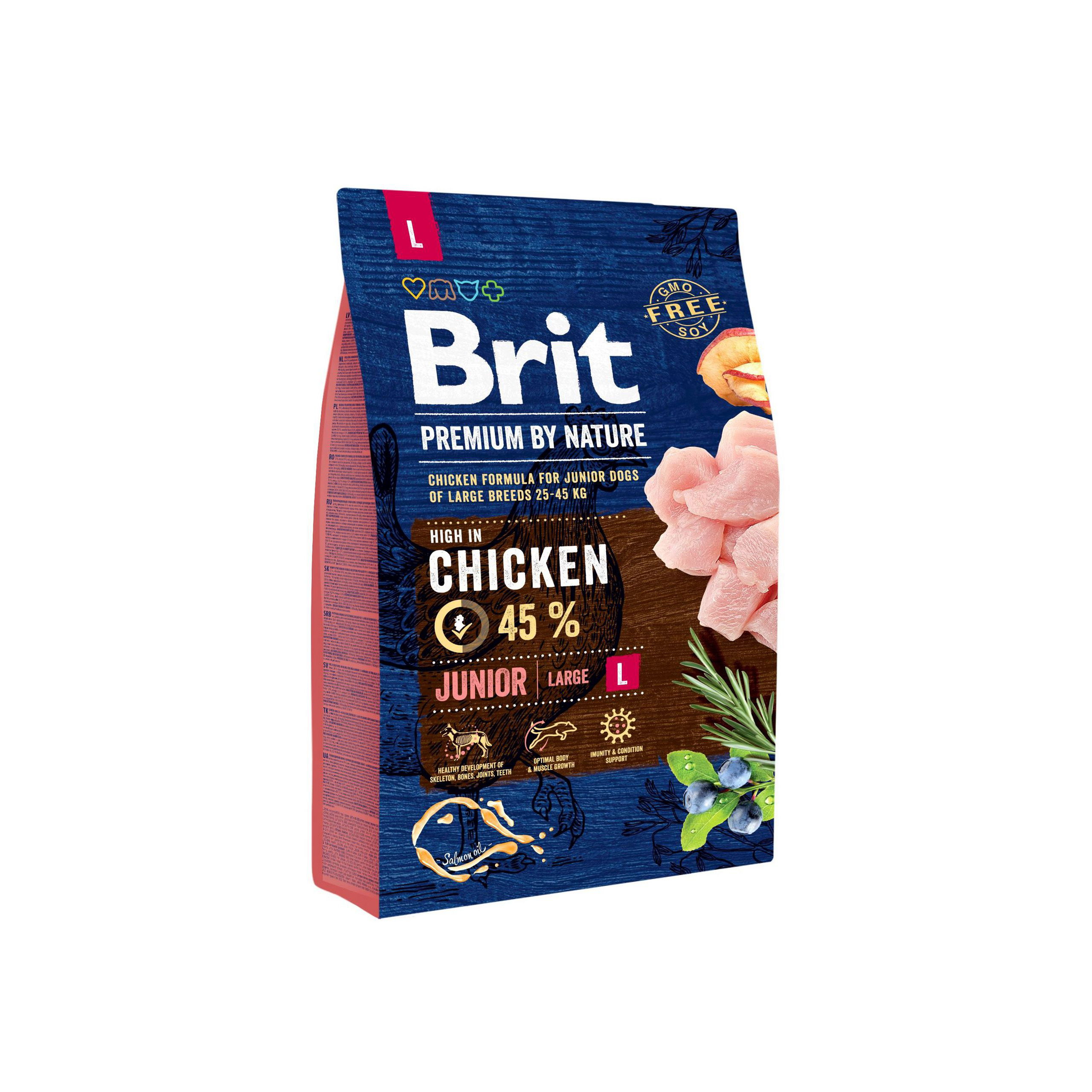 BRIT Premium By Nature JUNIOR L large to sucha karma dla młodych psów dużych ras. Jej składniki zostały starannie dobrany, by zapewnić szczeniętom posiłek, który dostarczy im wszystkich składników odżywczych niezbędnych do prawidłowego rozwoju. Wyróżnia się wysoką zawartością mięsa kurczaka, uwielbianego przez wszystkie psy za swój delikatny smak. Ponadto skład karmy wzbogacony został przez dodatek zdrowych owoców i ziół, które urozmaicają ją swoim aromatem. Brit Premium zawiera duże ilości białka, witamin i minerałów regulujących funkcjonowanie mięśni i narządów u czworonogów. Co więcej, w procesie produkcji użyto wyłącznie najwyższej jakości naturalnych produktów, dzięki czemu Twój psiak dostaje, to co najlepsze.