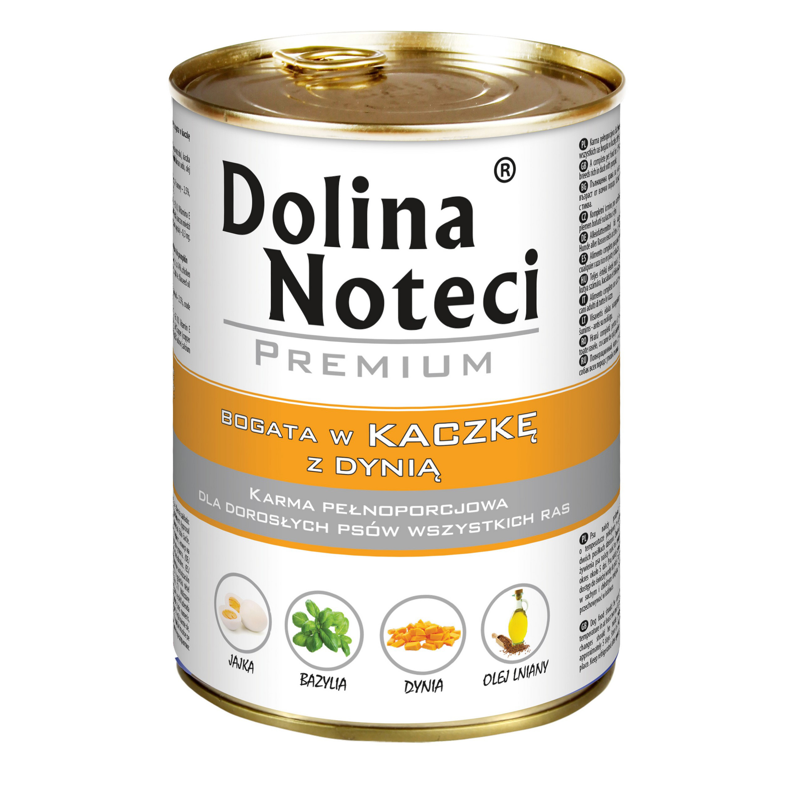 Dolina Noteci Premium ADULT z KACZKĄ Z DYNIĄ to pełnoporcjowa mokra karma stworzona z myślą o potrzebach żywieniowych psów dorosłych. Bazuje na świeżym mięsie kaczki od sprawdzonych dostawców. Mięso kacze jest bogate w aminokwasy takie jak metionina i cysteina. Zarówno mięso kacze, jak i produkty pochodne dostarczają do psiego organizmu żelazo oraz selen, które są niezbędne dla zdrowej krwi oraz aktywizują naturalne mechanizmy obronne organizmu. Dodatek dyni wzbogaca pokarm w węglowodany łatwe do strawienia oraz usprawnia działanie układu pokarmowego. W połączeniu z mięsem, tworzy unikalną kompozycję smaków, cieszącą się wysoką akceptacją wśród czworonogów.