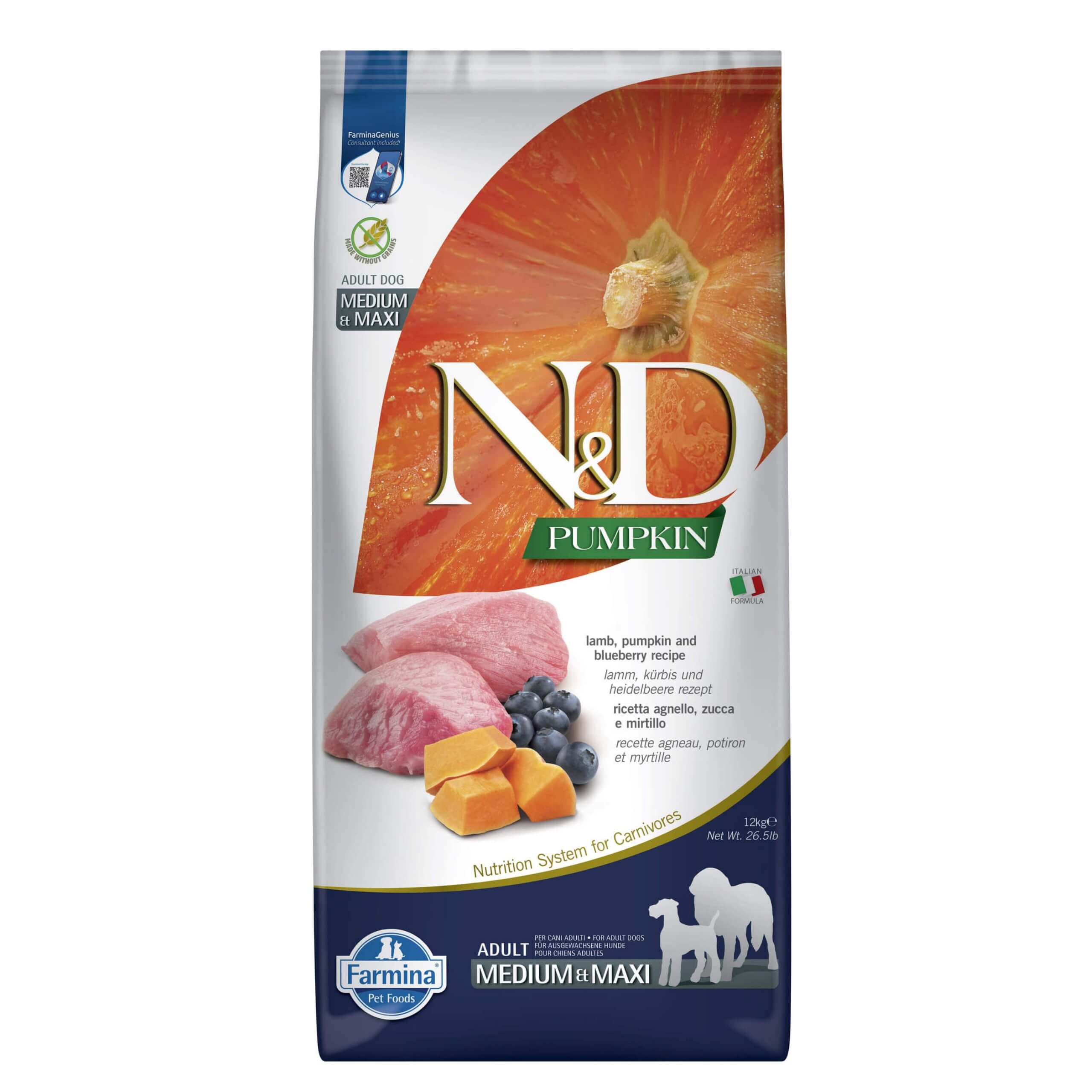 FARMINA N&D PUMPKIN Adult Lamb Medium/Maxi stanowi smaczny posiłek dla psów w różnych grupach wiekowych, zapewniający zdrową i zbilansowaną dietę.