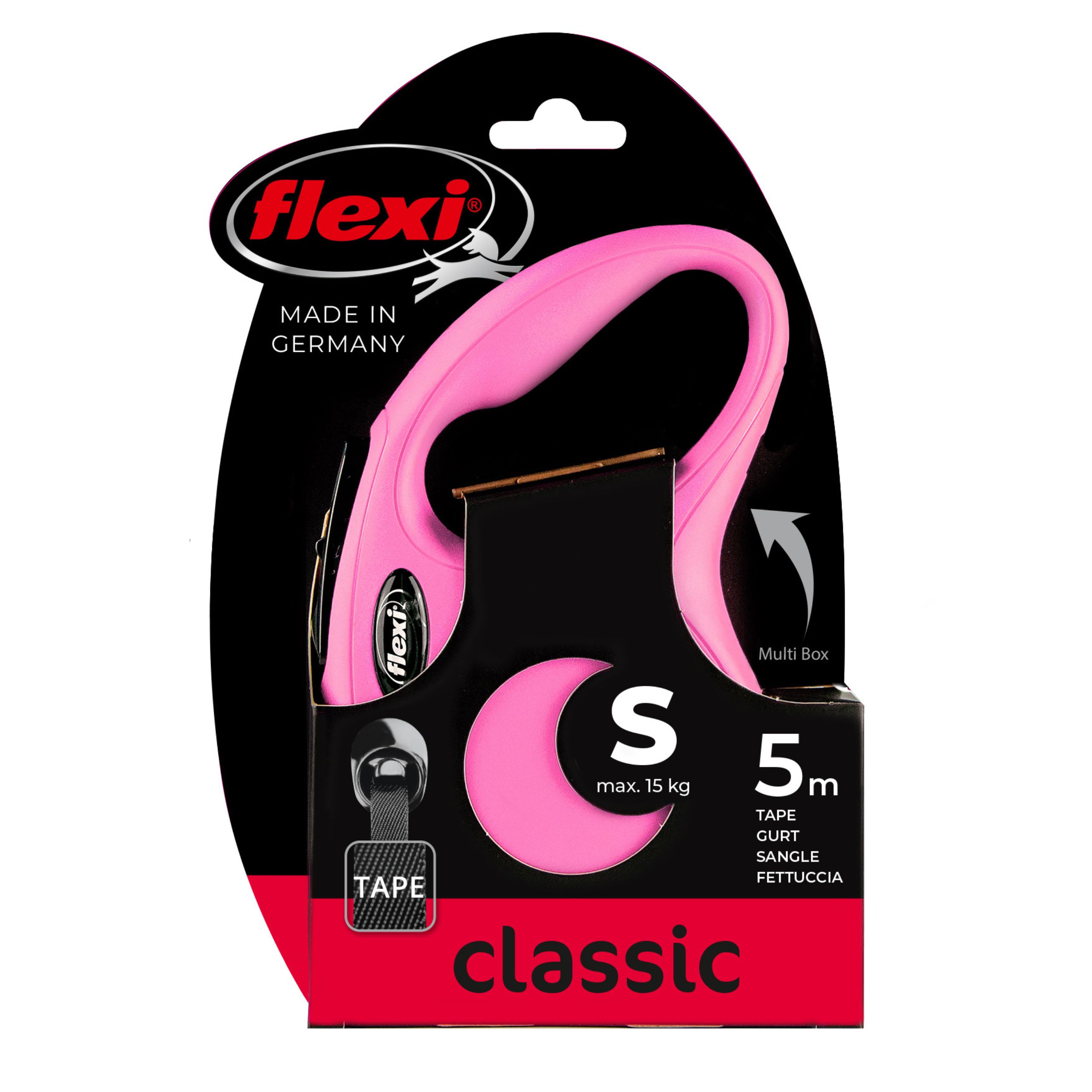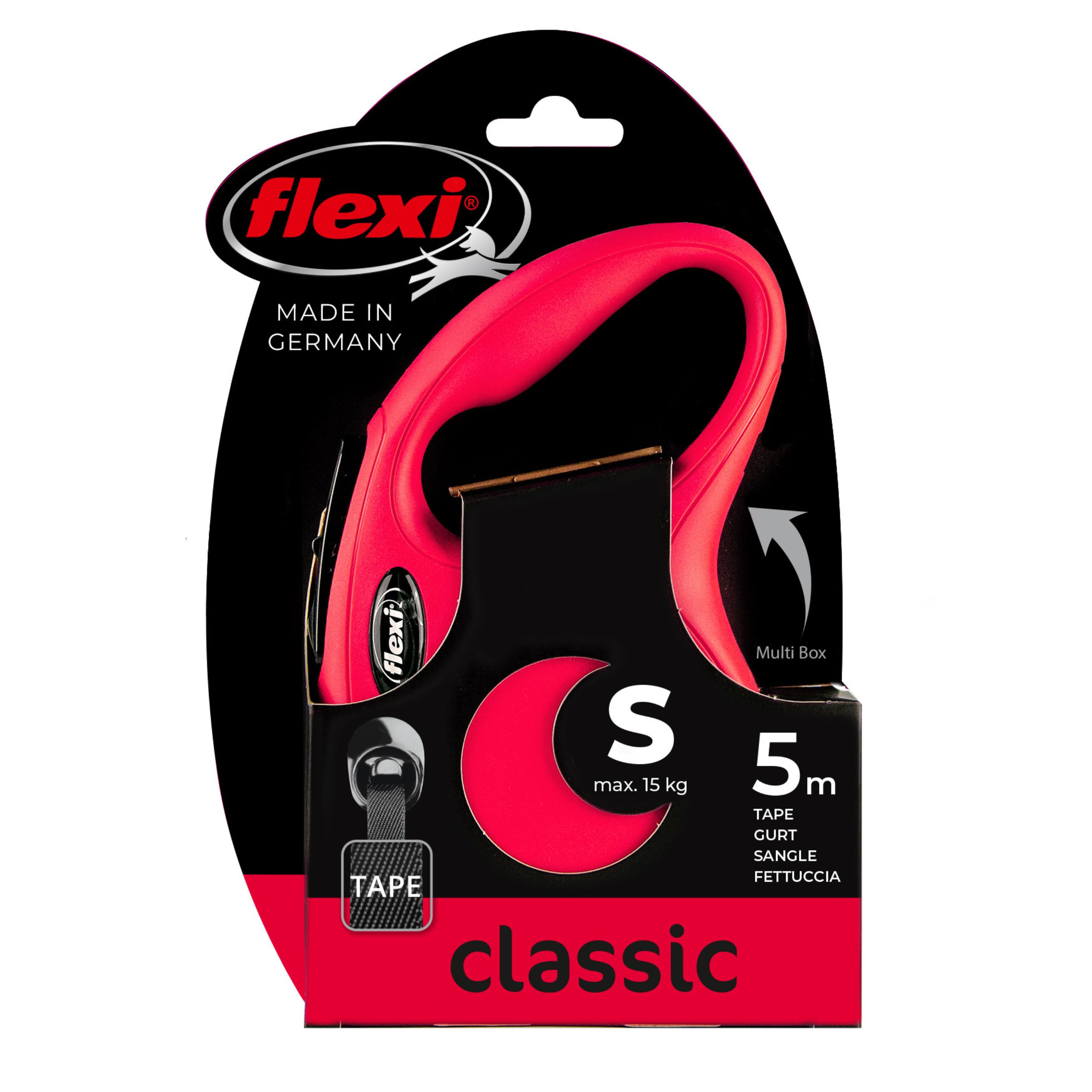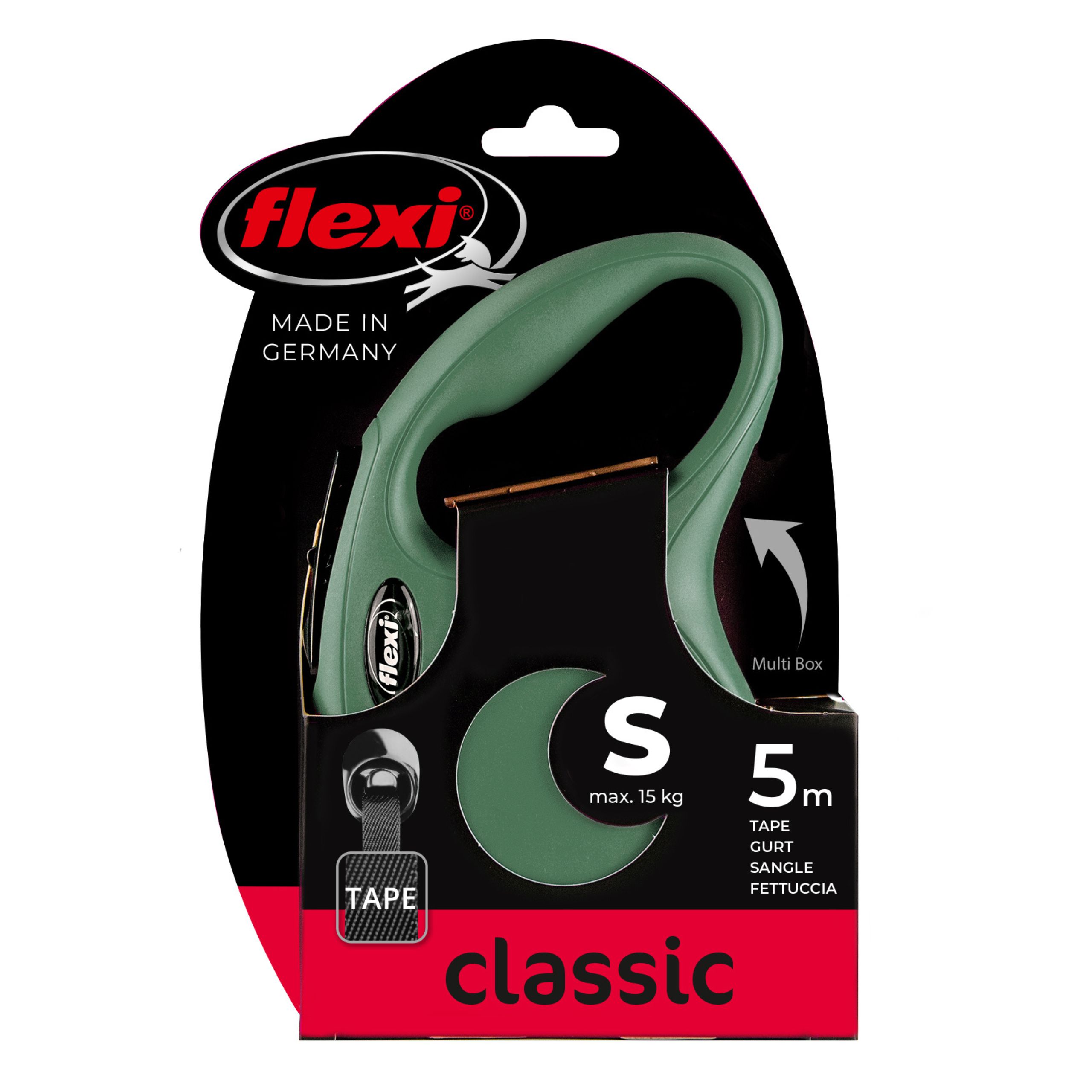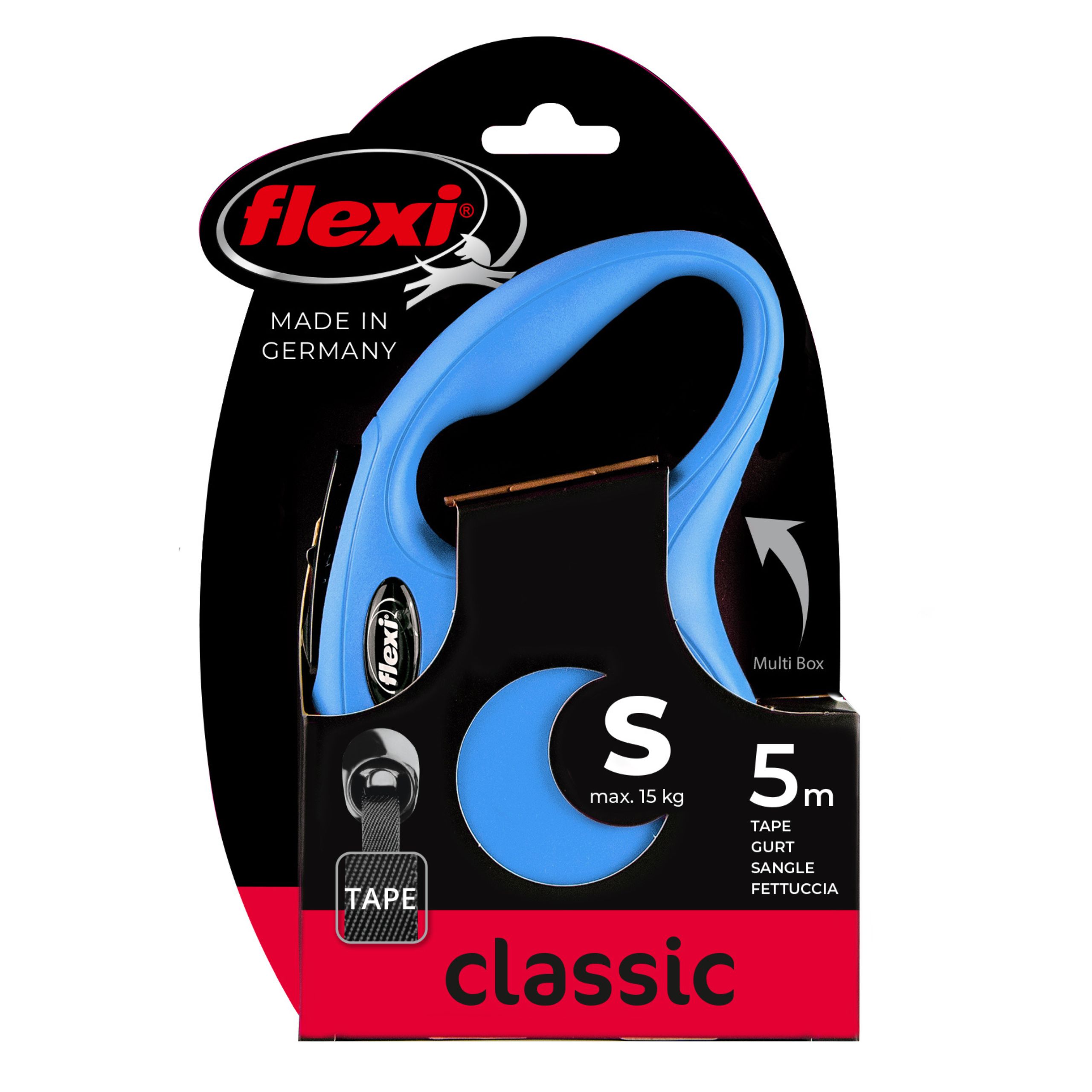 Smycz automatyczna dla psów ras małych do 15 kg z taśmą o długości 5m. Smycz Flexi Classic jest nową wersją klasycznej smyczy automatycznej Flexi. Posiada ulepszony system hamulcowy oram możliwość zastosowania akcesoriów: Multibox oraz Led Lighting System.