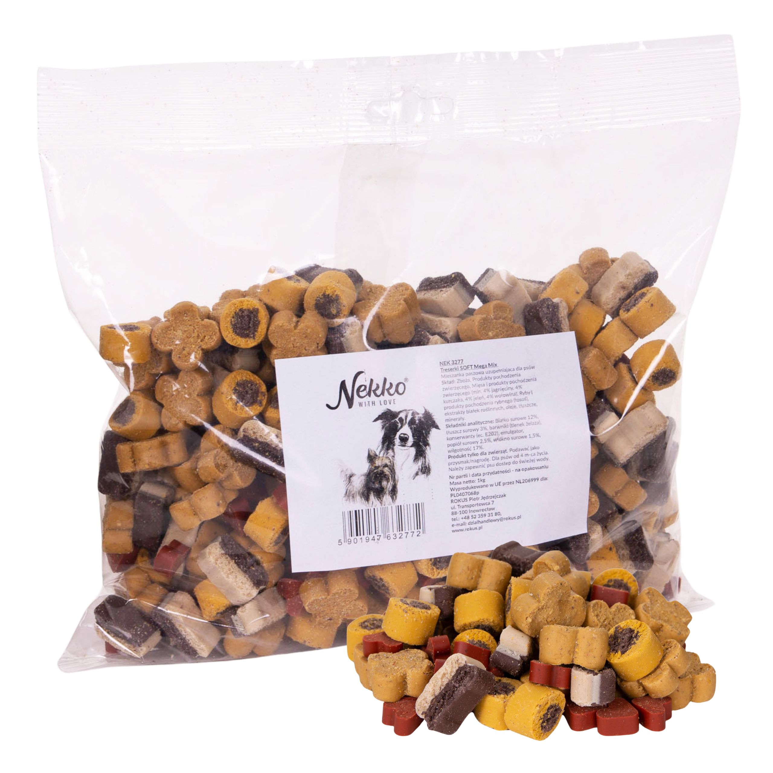 Nekko Treserki Soft MEGA MIX zapewniają psu wszechstronne wsparcie odżywcze i ułatwiają skupienie na nauce.